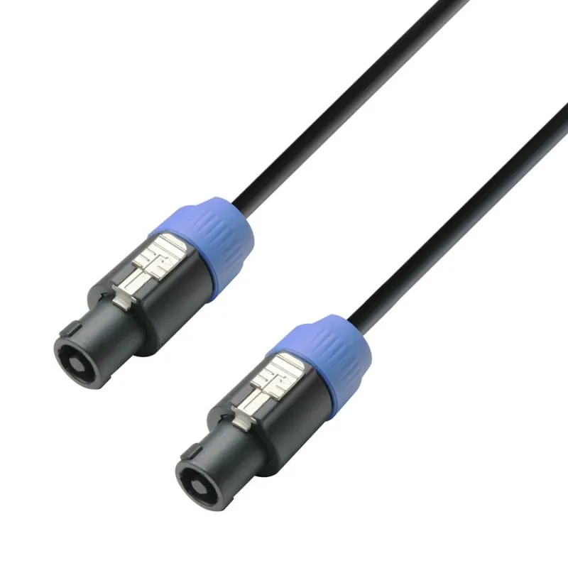 Cable de altavoz altamente flexible con una sección transversal de 2 × 2,5 mm², equipado con conectores de altavoz estándar de 4 pines (doblemente asignados). Ideal para el cableado de cajas potentes o de monitores para escenarios.