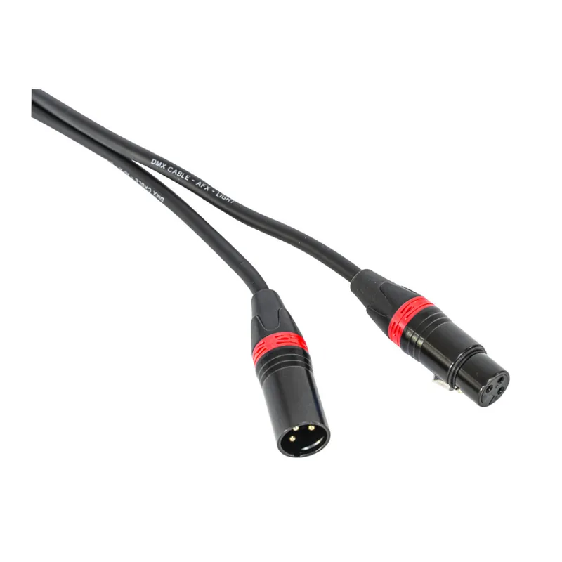 - Cable DMX de alta calidad con conector macho en un extremo y conector hembra en el otro.