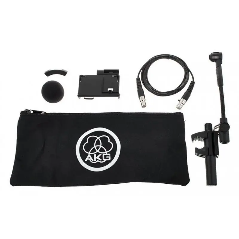 - Micrófono de condensador cardioide tipo abrazadera con cápsula de suspensión elástica.
