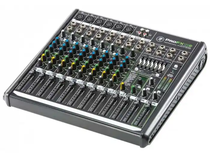 La Mackie Pro FX12 v2 es una mesa de mezclas profesional de 12 canales con 6 previos de micrófono Mackie VITA Clase-A. Incorpora también un procesador digital de efectos con 16 efectos, ecualizador gráfico de 7 bandas e interfaz usb para conectar tu ordenador. La Mackie Pro FX12 v2 es ideal para pequeñas sonorizaciones profesionales o para estudio, ya que ofrece una gran calidad de sonido.
