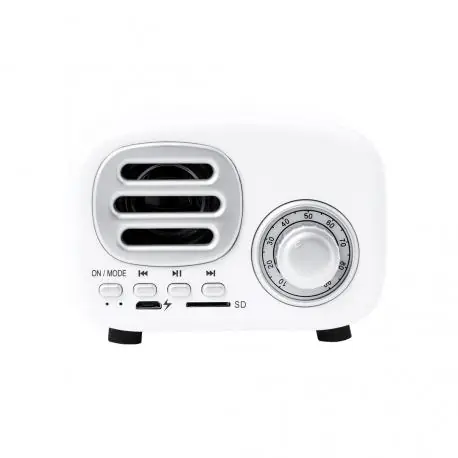 Conexión Bluetooth. Potencia sonido 3W. Batería 500 mAh. Compacto altavoz con estilo vintage en forma de radio de época y 3w de potencia. Con conexión bluetooth para disfrutar de la libertad inalámbrica, reproduciendo la música y aportando estilo al mismo tiempo. Con indicadores luminosos, ranura para tarjetas micro SD de hasta 64 GB y batería de 500 mAh. Presentado en atractiva caja de diseño kraft, con manual de instrucciones en español e inglés.