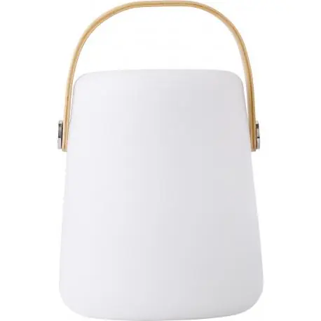 Cubo LED de plástico con altavoz inalámbrico en la parte superior y asa. Las luces LED cambian de color. Entrada 100V – 240V, 50 / 60Hz. Salida: 5V / 1A. Grado impermeabilidad IP44. Incluye control remoto y cable USB.