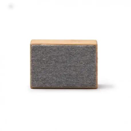 Altavoz inalámbrico con cuerpo elaborado en bambú y superficie en poliéster reciclado RPET, con 3W de potencia con batería recargable.Salida de audio mediante conexión Bluetooth. Cuenta con indicador luminoso de conexión, control de encendido/apagado y puerto de carga. Distancia de funcionamiento de hasta 10 metros.Presentación en caja de diseño eco.