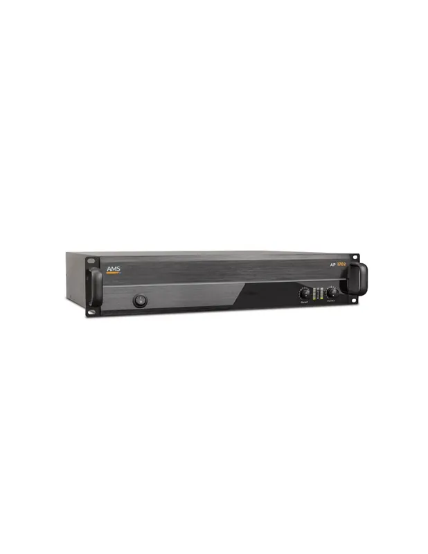 AP 1702 es un amplificador profesional para instalaciones de baja impedancia. De esta forma, permite funcionar con sistemas de altavoces de 4 y 8 ohmios, así como en modo Bridge. Cuenta con selector de modo stereo/bridge, otro de sensibilidad de entrada y conmutador de masa flotante. Cada canal cuenta con entradas balanceadas y LINK mediante conector XLR3. Para la salida también dispone de Speakon en este caso. Disponen de sistemas de protección ante cortocircuito y DC en la salida, sobretemperatura o limitador, así como función soft start. Su tamaño en 2 HU 19″, permite la colocación de varias unidades en un rack de transporte