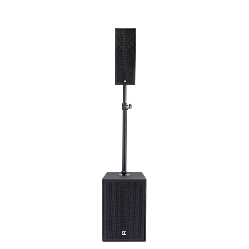 El diseño modular del MOJO2200curve permite una fácil instalación sin necesidad de herramientas adicionales. La barra de acoplamiento neumática ajustable facilita la conexión entre el subwoofer y la columna de altavoces, asegurando estabilidad y un ensamblaje seguro.