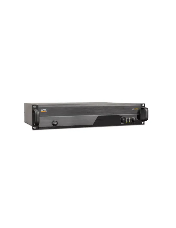 AP 2402 es un amplificador profesional para instalaciones de baja impedancia. De esta forma, permite funcionar con sistemas de altavoces de 4 y 8 ohmios, así como en modo Bridge. Cuenta con selector de modo stereo/bridge, otro de sensibilidad de entrada y conmutador de masa flotante. Cada canal cuenta con entradas balanceadas y LINK mediante conector XLR3. Para la salida también dispone de Speakon en este caso. Disponen de sistemas de protección ante cortocircuito y DC en la salida, sobretemperatura o limitador, así como función soft start. Su tamaño en 2 HU 19″, permite la colocación de varias unidades en un rack de transporte.