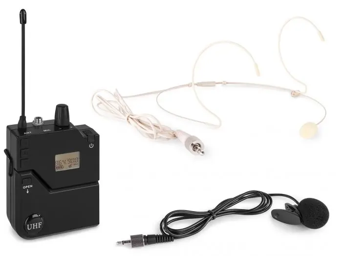 Petaca transmisora para inalambricos de la serie PD632 UHF. Equipada con sistema IR para seleccion de canal. Ideal para aplicaciones manos libres, vocaistas, presentadores, etc. Incluye micro de solapa y micro de cabeza en color piel.