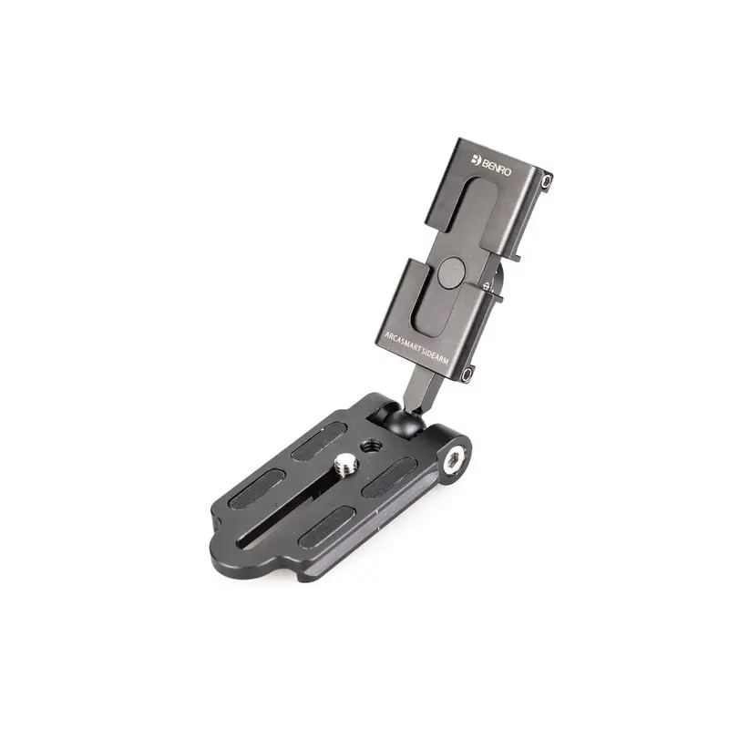 Con el soporte para cámara de brazo lateral ArcaSmart y la abrazadera para teléfono inteligente de Benro, tiene la opción de realizar filmaciones puramente móviles o agregar un teléfono como complemento a su configuración tradicional de DSLR. La placa de montaje se puede conectar a un trípode a través de una abrazadera de liberación rápida estilo Arca-Swiss o la conexión hembra roscada de 1/4″-20. Una vez colocadas, las abrazaderas del brazo lateral se pueden desplegar para sujetar su teléfono inteligente. Conecte una cámara DSLR a la platea y usa el teléfono como monitor o filmación adicional, o dispara exclusivamente con tu smartphone.
