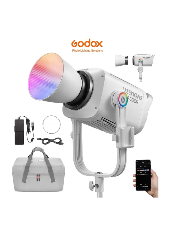 El Godox Litemons LA600R White es un foco LED RGB de alta potencia (600 W) diseñado para producciones audiovisuales profesionales