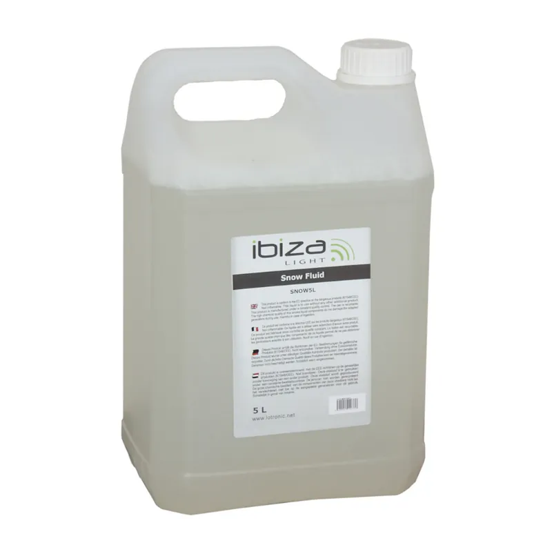 - Utilización versátil: Creado para ser utilizado con diferentes marcas de máquinas de nieve, el IBIZA LIGH SNOW5L te brinda una amplia versatilidad en tus creaciones escénicas.
