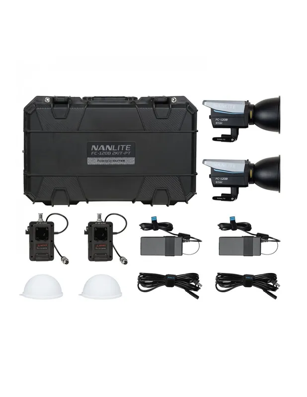 Potencia nominal de 145 W por foco que genera hasta 17450 lux a 1 m con reflector de 45° a 5600 K, ideal para iluminar con fuerza sin sacrificar portabilidad.