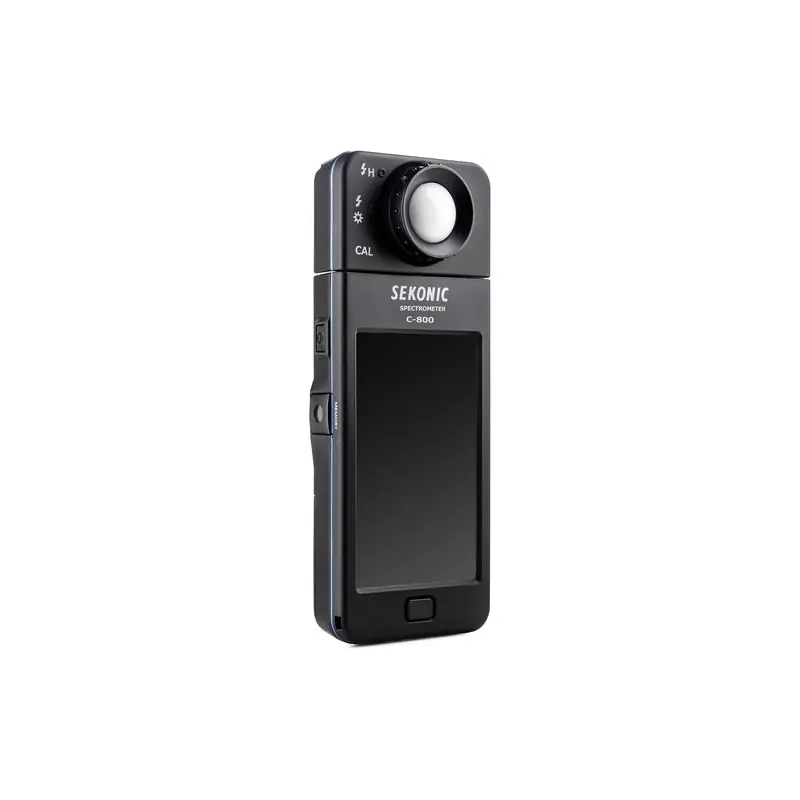 Diseñado para fotógrafos, videógrafos, directores de fotografía y gaffers, el ESPECTRÓMETRO C-800 de Sekonic es un medidor de campo avanzado capaz de leer prácticamente todas las fuentes de luz, ya sean LED, flash, incandescentes, HMI, fluorescentes o en el espectro de luz natural. . Lo que es más importante, es una práctica herramienta de iluminación que analiza la fuente de luz utilizando 11 modos de visualización diferentes en su pantalla táctil a color de 4,3″, indicando específicamente lo que debe hacer para lograr el efecto deseado. El sensor CMOS del medidor permite la medición en incrementos tan finos como 1nm y permite la captura de picos de color en la salida de luz, una función especialmente valiosa cuando se trabaja con LED, HMI, iluminación fluorescente y fuentes mixtas.