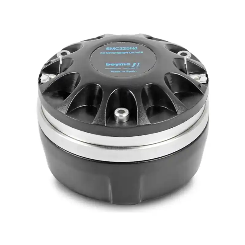 El motor de compresión Beyma SMC-225/Nd tiene una sensibilidad alta y admite una potencia de hasta 80 W con una frecuencia superior a 1.5 kHz y 8 Ohm.