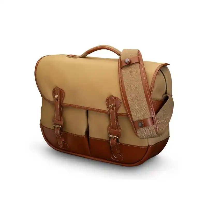 El lienzo de color caqui y cuero tan Eventer bolso de la cámara de Billingham sostiene una cámara réflex digital con un agarre y una pequeña lente, un 70-200 f / 2.8 lente, una lente adicional, y un destello entre los divisores acolchados, touch-fijada en el interior de una pieza de enganche extraíble en el compartimiento principal con cremallera. La pieza de enganche extraíble también da cabida a un «ordenador portátil 13 detrás de un divisor interior táctil abrochado.