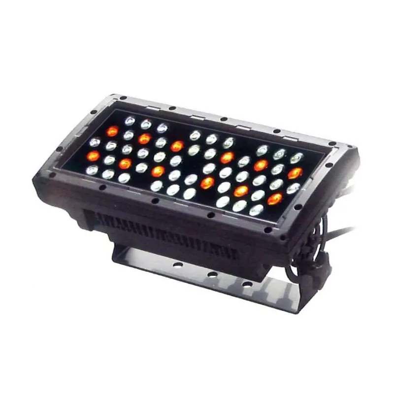 - Proyector de LED muy potente, basado en 54 LEDs de 1 W de alta potencia (42 blancos + 8 naranjas)