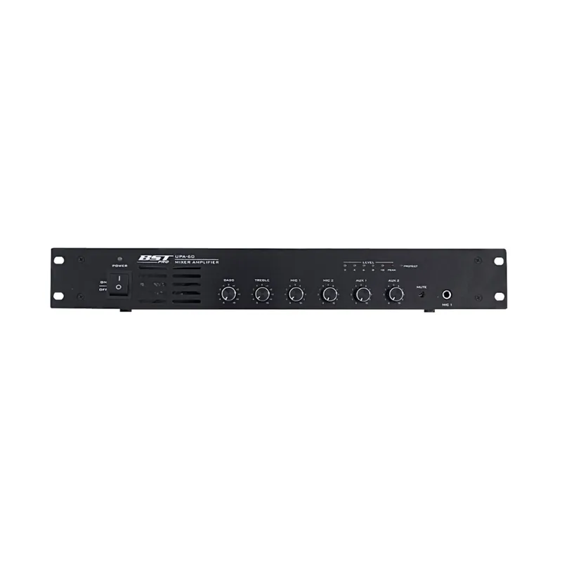 Amplifica y mezcla con el BST UPA60 de 100V y 60W. Este dispositivo compacto y poderoso es ideal para aplicaciones de megafonía y sonorización en diversos entornos.