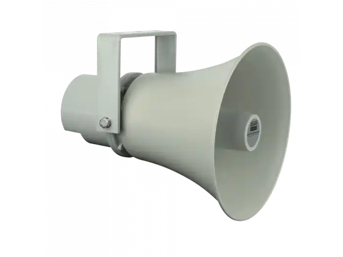 El DAP HS-30R es un altavoz de bocina cuadrado pasivo, de 30 vatios y color gris claro, adecuado para sistemas de PA. Puesto que la distribución horizontal es mejor que la vertical, se suele utilizar para proyecciones a corta distancia.