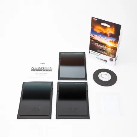 El kit NUANCES Extreme incluye 3 filtros inversos graduados con densidad máxima de 2, 3 y 4 paradas. Los filtros NUANCES Extreme están hechos de un vidrio mineral altamente resistente, capaz de resistir caídas accidentales e introduciendo tecnología innovadora. Un nuevo proceso de recubrimiento asegura una densidad uniforme y se aplica una aleación nanométrica en ambos lados de un vidrio templado altamente resistente, lo que resulta en un neutralidad impresionante Los matices Extreme Reverse Grade ND4, ND8 y ND16 permiten hasta 2, 3 y 4 paradas de compensación de luz con una transición suave desde la mitad del filtro hasta la parte superior, por lo que el efecto del filtro es menos marcado que en los filtros de grado suave . Las esquinas redondeadas y el grosor de 2 mm hacen que los filtros Nuances Extreme sean más fáciles de insertar en condiciones extremas. COKIN recomienda el uso del portafiltros EVO para garantizar una protección eficaz contra las fugas de luz.