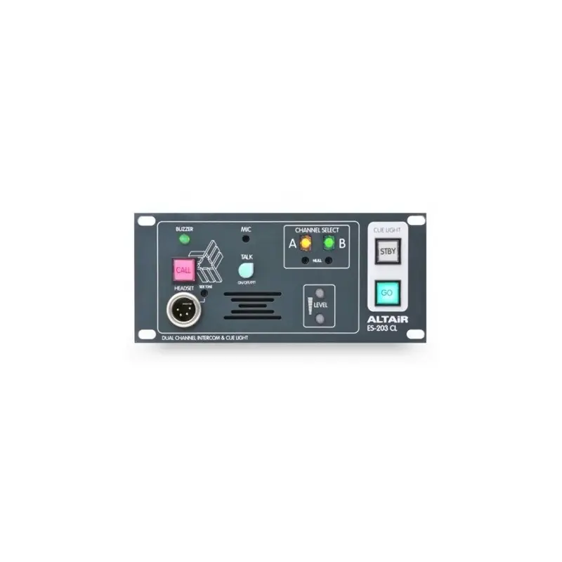 La nueva estación de pared/sobremesa ES-203 CL se presenta como un elemento a medio camino entre los sistemas de intercom y los sistemas Cue Light. Esta estación permite la comunicación con dos canales de intercom independientes, e incorpora al mismo tiempo un receptor Cue Light de avisos luminosos.
