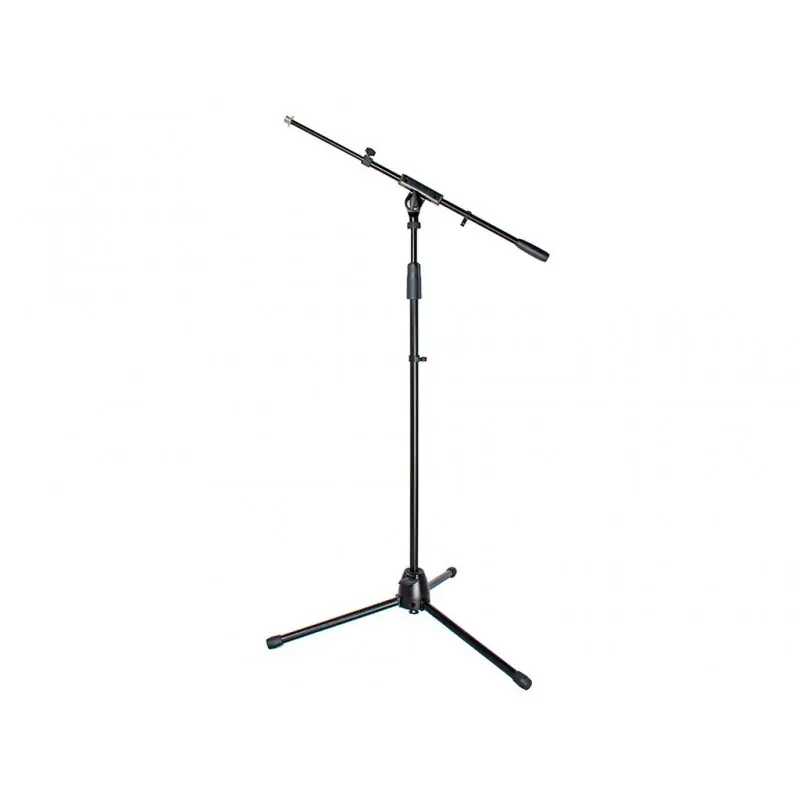 Soporte de micrófono con jirafa incorporada. Fabricada en metal y de color negro. Desplegable hasta 1.7 m. Jirafa extensible entre 48 y 87 cm