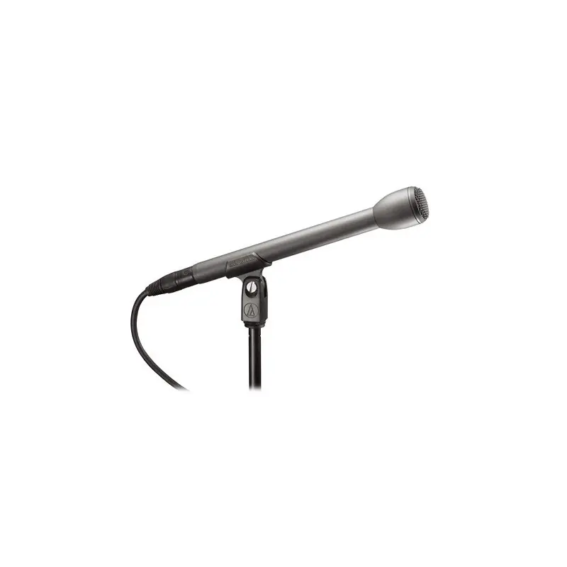 El micrófono AT8004L de Audio-Technica (9,43” de longitud) está diseñado para entrevistas in situ y retransmisiones deportivas. Su mango ampliado ofrece espacio suficiente para el logotipo de la empresa. El micrófono ofrece una reproducción excepcionalmente natural e incorpora aislamiento interno que minimiza y el ruido procedente de la manipulación y de los cables. Su patrón polar omnidireccional es ideal para la reproducción del sonido ambiente. La robusta cubierta con rejilla de acero endurecido lo hace muy resistente para uso en exteriores. También disponible el modelo más corto, AT8004 (5,93”).