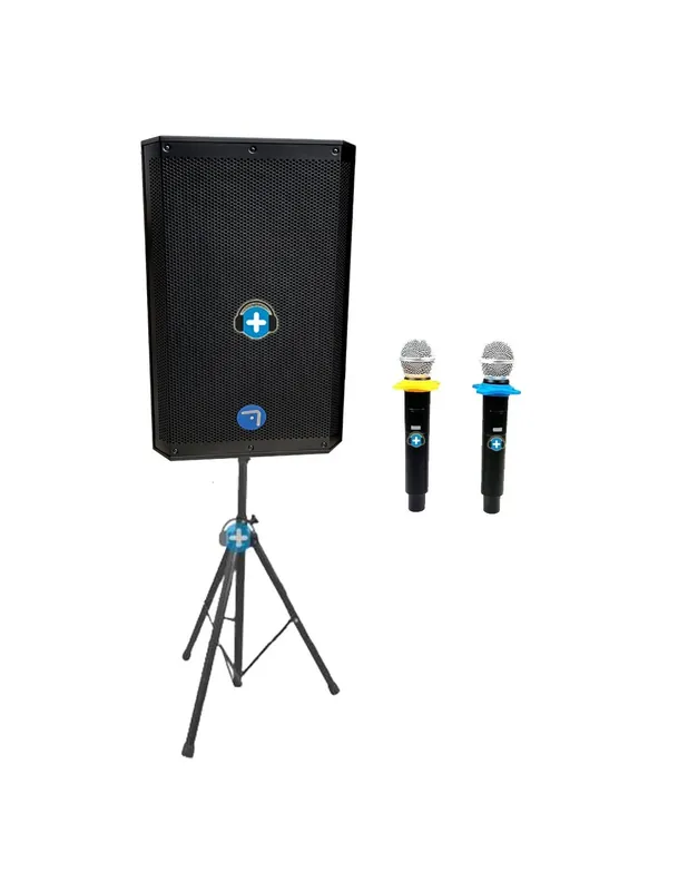 Equipo de sonido compuesto de altavoz de 15 pulgadas con pie de altavoz y micrófono inalámbrico