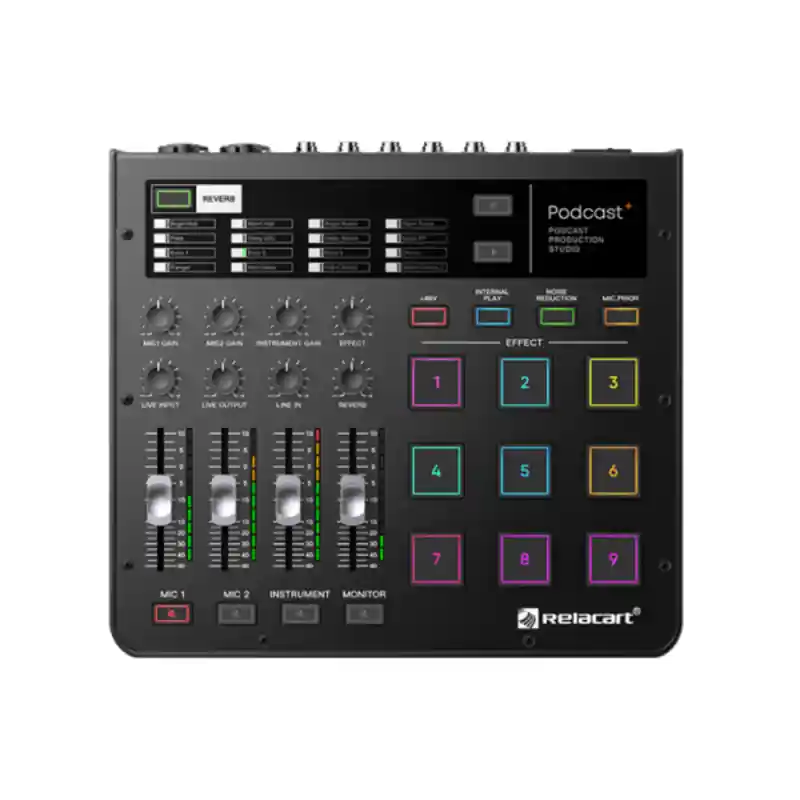 Podcast+ es un mezclador de estudio de producción de podcasts especialmente diseñado para transmisiones en vivo y momentos en movimiento, que incluye personalizaciones en vivo como mezclas, efectos de sonido y efectos. Puede conectar hasta 2 teléfonos móviles o PC al mismo tiempo para transmitir a equipos de transmisión en vivo a través de señales digitales. El diseño es liviano y fácil de transportar, la disposición del panel es simple y las funciones de los botones son claras y fáciles de entender. El dispositivo se alimenta a través de una interfaz USB-C de 5 V/1 A y admite alimentación desde un cargador de teléfono móvil o un banco de energía adecuado. Podcast+ es adecuado para transmisiones en vivo, grabaciones, karaoke y otras funciones en teléfonos móviles, tabletas, PC, etc.
