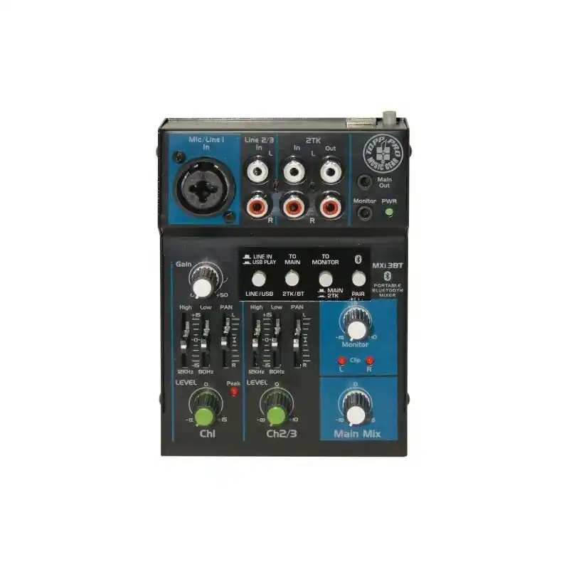 Topp Pro MXI3BT Mezclador de 3 canales con USB y receptor de Bluetooth integrado