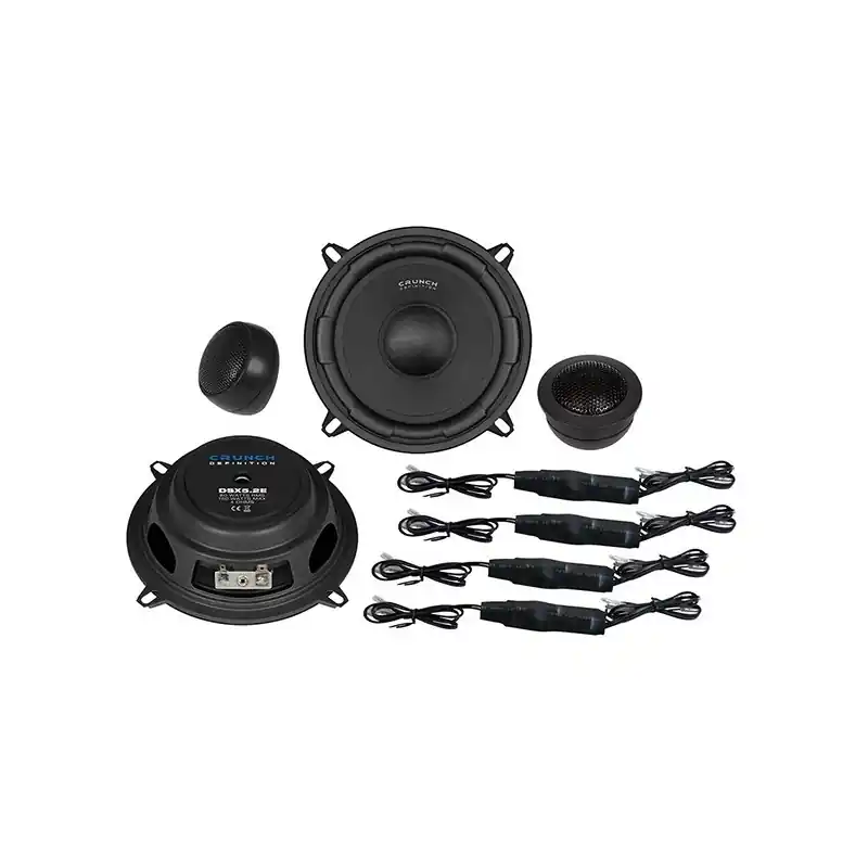 Los altavoces Crunch DSX 5.2E tienen un diseño extraplano gracias a su imán especial, esto nos permite reducir la profundidad de instalación del altavoz y facilitar su montaje en vehículos con espacios de montaje limitados. También dispone de bobinas de voz de 25 mm planas. El crossover en línea y separado para el woofer y el tweeter nos facilita la instalación en situaciones donde el woofer y el tweeter se encuentran alejados.