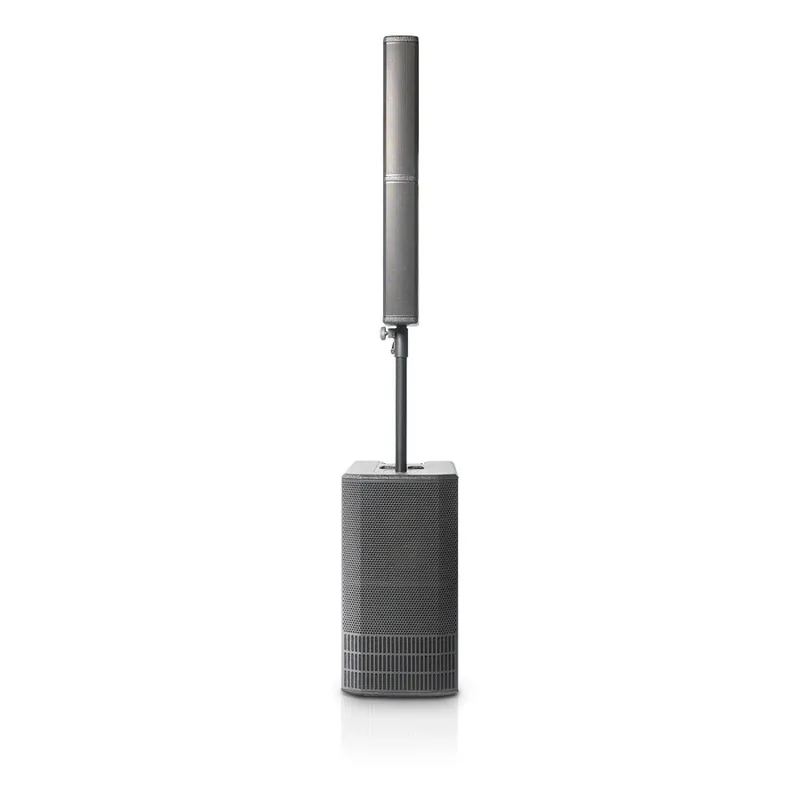 - Diseño modular y compacto: El sistema consta de un subwoofer y una columna superior, facilitando su transporte e instalación en diversos entornos.