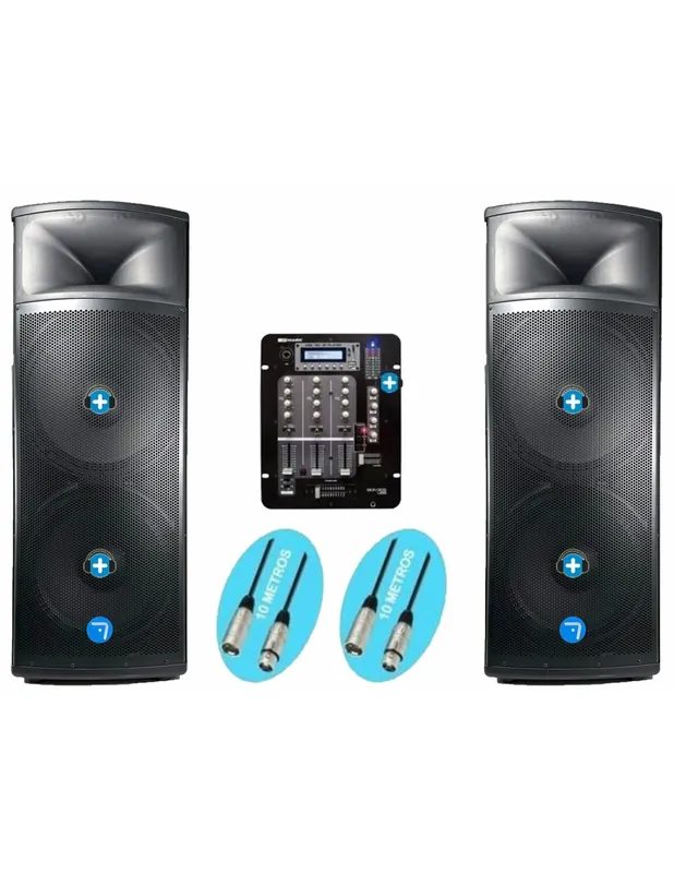 Equipo de sonido con altavoces bluetooth estereo, que te permite conectarlos directamente desde tu teléfono móvil, O también puedes trabajar a través de la mesa de mezclas con conexión con cableado para poder trabajar al estilo tradicional. Este potente equipo de sonido, esta compuesto por 2 altavoces de doble cono de 15 pulgadas, SV15APRO-TWS-ASP, que le permiten tener una buena respuesta de grabes tanto en interior como exterior. ideal para Discomoviles, carrozas, sonorizaciones tanto en interiores como exteriores. Este pack de sonido te permite tener un gran equipo de sonido con 4000w de potencia maxima .