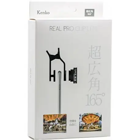 La lente Kenko Real Pro 165º (0,4x) Super Angular es una lente óptica fabricada con vidrio procesado fino. La lente Kenko crea un campo de visión de 165 °. (0,4x) Super Angular, viene con clip universal que se adjunta al teléfono inteligente, tablet u otro gadget.