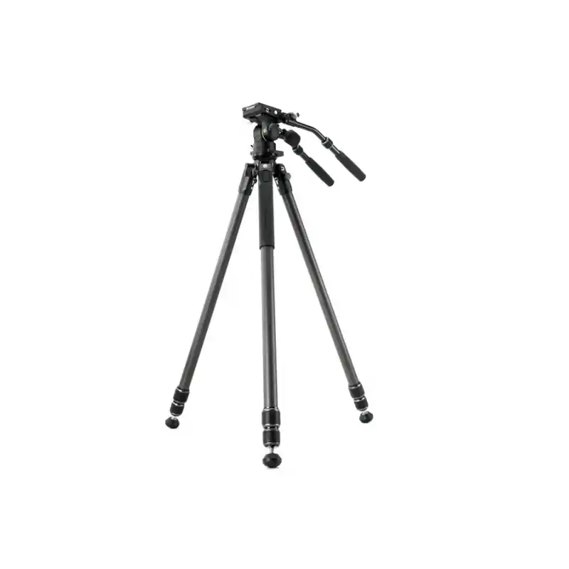 Este Kit Alta Pro 3VL incluye la rótula de vídeo fluida Veo PH-18, fabricada con CNC, que cuenta con bloqueo de inclinación independiente, así como una rueda para ajustar la fricción acorde al peso de la cámara de vídeo. Se incluyen dos mangos telescópicos que se pueden quitar y extender para adaptarse a las preferencias del videógrafo.