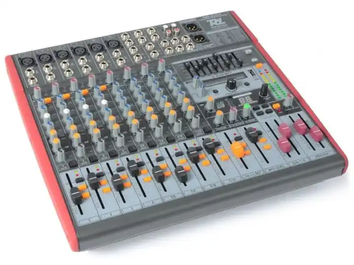 La mesa de mezclas profesional PDM-S1203 de 12 canales ofrece una alta calidad de mezcla junto a un procesador digital de efectos DSP, reproduccion y grabacion de MP3 via puerto USB, estereo ecualizador de 9 bandas, etc.. Cada canal tiene 3 bandas de tono (el canal estereo 4 bandas) y control rotativo para ajustar la frecuencia de corte. La alta calidad de su previo asegura una salida cristalina con una dinamica envidiable. Este mezclador es indispensable en disco movil, y eventos que necesiten alta calidad sonora. Tambien ideal para bandas, estudios y pequeños escenarios.