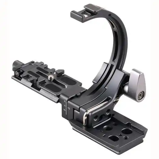 Este soporte mantiene tu cámara perfectamente centrada, asegurando una alineación precisa en cualquier ángulo, ya sea en orientación horizontal o vertical. Su innovador diseño de media anilla permite la rotación sin interferir con el agarre de la cámara, garantizando comodidad en cada uso.