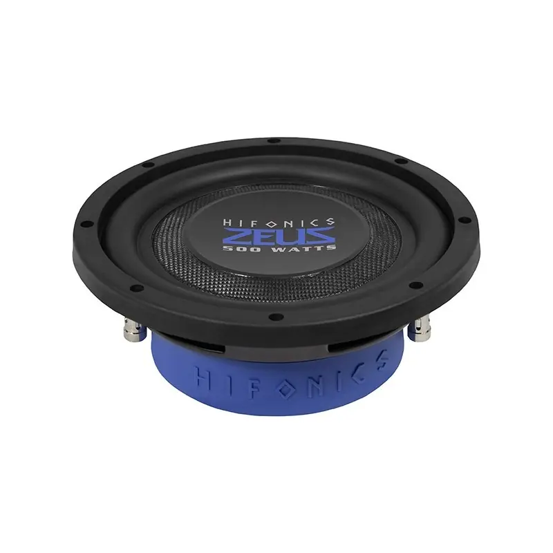 Los subwoofers Hifonics ZST8D2 de 8″ de la serie Zeus ZST entregan una potencia de 500 W. Tienen un diseño plano para que su instalación sea más versátil en maleteros pequeños ya que ocupan poco espacio, la membrana de este subwoofer está construida en carbono y fibra de vidrio, lo que garantiza unas excursiones de graves altas, el aire se comprime limpiamente y sin distorsión con un Xmax de hasta 15 mm.