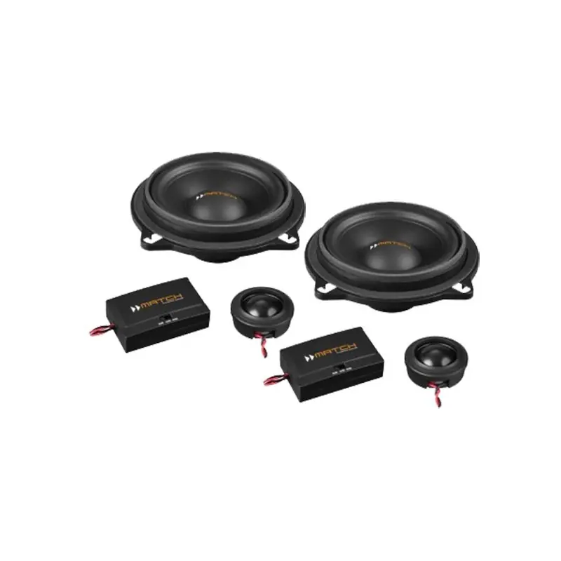 El kit de altavoces Match UP C42BMW FRT.1 de 2 vías separadas específico para modelos BMW admite una potencia de hasta 120 W, este sistema de altavoces proporciona mucha mejor precisión y dinámica en todo el rango de frecuencias combinado con una fantástica resolución de agudos gracias a su tweeter de cúpula de seda de 25 mm. Además, el nivel del tweeter es ajustable en tres pasos según las preferencias personales.