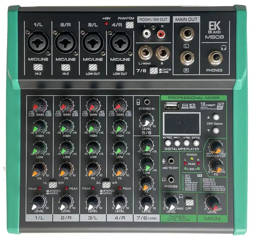 Características de EK Audio MB08 mesa de mezclas con efectos