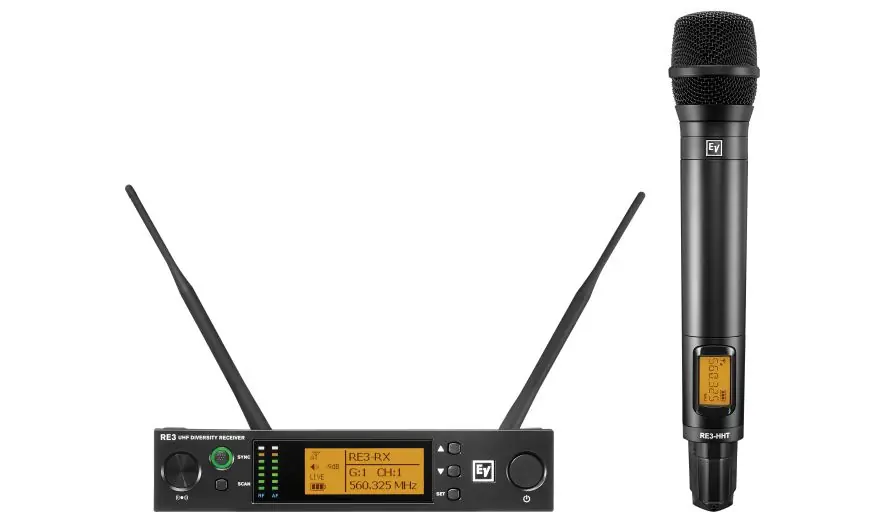 - Sistema Inalámbrico UHF Diversity compuesto por receptor RE3-RX y transmisor de mano RE3-HHT con cápsula RE420, condensador cardioide de calidad premium, diseñada para vocalista / palabra.