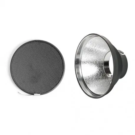 El reflector de 18 cm de diámetro combina una gran emisión de la luz con una buena dispersión. Intensifica en 1 f-stop la salida de luz y puede usarse directa o indirectamente con los paraguas Elinchrom.