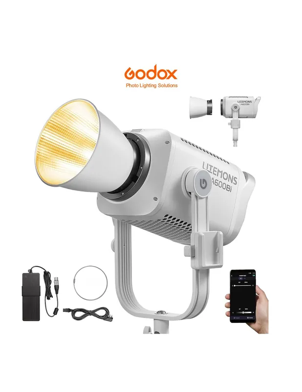 El Godox Litemons LA600Bi White es un foco LED bi-color de alta potencia (600 W) diseñado para producciones profesionales que requieren control preciso de la temperatura de color,