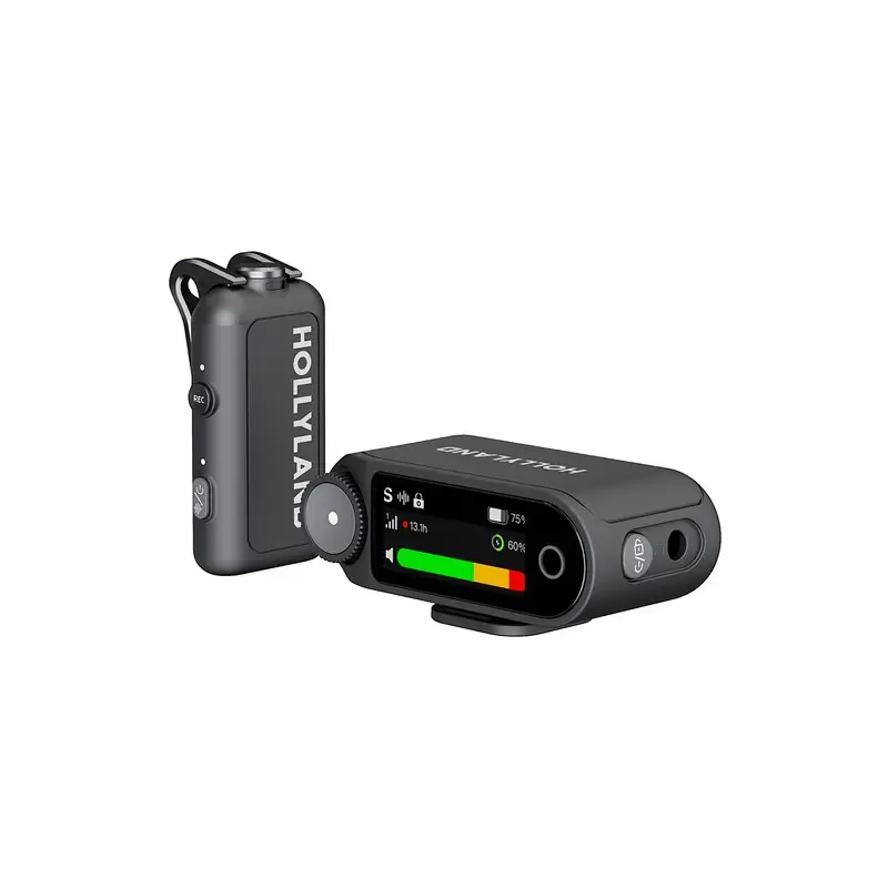 Equipado con funciones avanzadas y compatible con monitoreo inalámbrico, el Hollyland LARK MAX 2 Solo es un sistema de micrófono inalámbrico digital potente y fácil de usar para videógrafos, podcasters, streamers y creadores de contenido. Permite grabar una sola voz directamente en la cámara con sonido profesional listo para transmisión, listo para usar. El Solo incluye un transmisor de clip ultracompacto con micrófono omnidireccional integrado, un receptor para cámara, un paravientos de felpa, un clip magnético, una funda de silicona y cables adaptadores.
