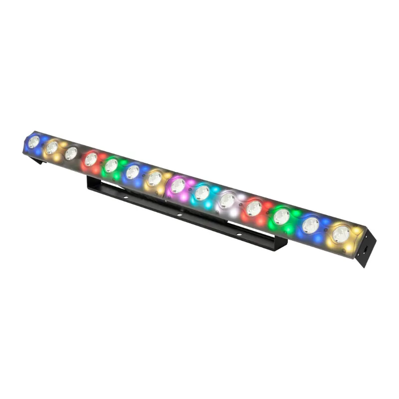 La IBIZA LIGHT FXBAR140 es una barra de animación versátil que combina un efecto blinder con una iluminación RGB en el fondo, ofreciendo una amplia gama de posibilidades creativas. Cada uno de sus 14 LEDs CREE blanco cálido de 3W proporciona un efecto blinder potente y envolvente. Además, la barra cuenta con 56 LEDs RGB 3-en-1 que se pueden controlar de forma individual o en grupos matriciales, lo que permite crear efectos de iluminación únicos y dinámicos.
