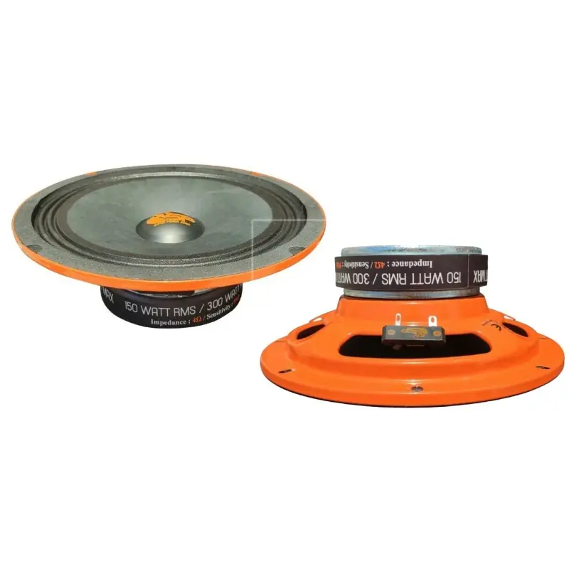 Altavoz medio/grave de 8″ SP Audio SP 8CM Slim es capaz de soportar una potencia de hasta 300 W, está fabricado con un cono de papel prensado y fibra de vidrio con una suspensión M Roll, una bobina de 1.5″ y un imán de ferrita.