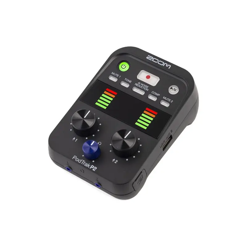 La Zoom PodTrak P2 es una solución todo en uno para podcasters que buscan calidad, portabilidad y simplicidad. Su diseño ultracompacto y ligero permite grabar en cualquier lugar sin necesidad de ordenador. Basta con conectar dos micrófonos USB y una tarjeta SD para empezar a capturar audio de calidad profesional.