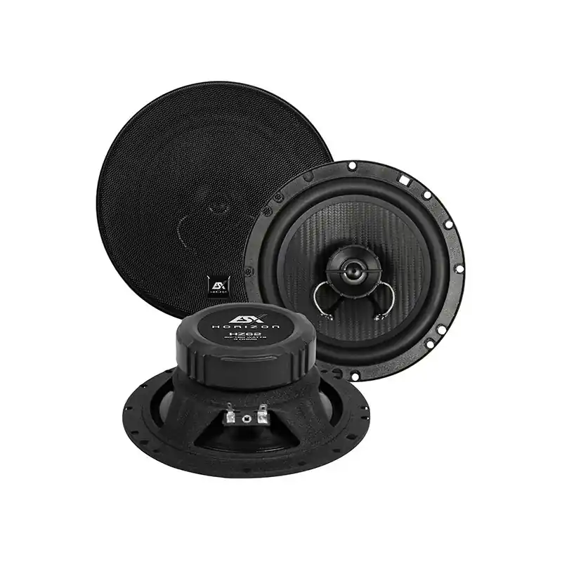 Los altavoces coaxiales de 2 vías de 6.5″ ESX Audio HZ 62 soportan una potencia de 180 W de la serie Horizon incorporan una membrana de polipropileno ultrarrígido que garantiza una respuesta precisa y nítida incluso a volúmenes altos constantes. Su imán esta protegido por una cubierta de goma acoplada a un chasis de acero de baja resonancia.