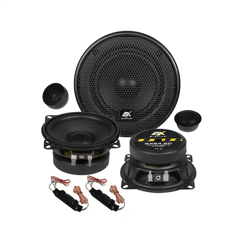 ESX Audio SXE 42C son unos altavoces de 4″ y dos vías separadas de la serie Quantum SXE, en esta línea de altavoces, para las frecuencias agudas se usan tweeters compactos con cúpula de de 20 mm y un imán de neodimio, que llegan hasta una frecuencia muy lineal de 20 kHz. Los woofers de 3 ohm, tiene una profundidad de instalación reducida, un chasis de acero plano y resistente a la torsión, un imán de ferrita y membrana de papel recubierto por arena de cuarzo especial que asegura una alta eficiencia.