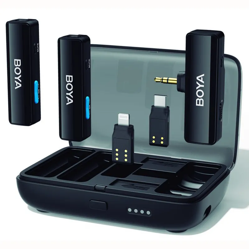 Micrófono inálambrico con canal dual de 2.4 Ghz muti compatible con camaras, smatphones (IOS / Android) tablets, ordernadores y mas…..