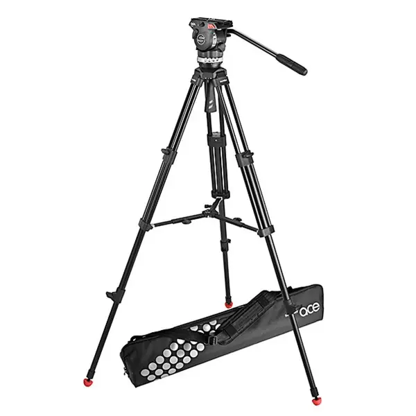 Equipa una rótula fluida Sachtler ACE M, que garantiza movimientos suaves y precisos en paneos e inclinaciones. Su trípode de doble tubo proporciona gran rigidez estructural y cuenta con un estabilizador intermedio que refuerza la estabilidad durante el uso.