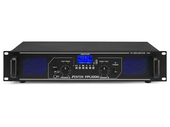 La serie Fenton FPL de amplificadores digitales incorporan tecnologia BT. El streaming inalambrico permite conectar tu musica favorita desde smartphones y tablets. Estos amplificadores incorporan reproductor media integrado para reproducir ficheros MP3 desde USB o SD card y utiliza la mas avanzada tecnologia en amplificacion para conseguir un sonido potente y cristalino. El aparato que no puede faltar en cualquier instalacion DJ! El amplificador tiene varias entradas RCA para television, CD, PC, BT, etc. Tambien hay una entrada frontal de jack 3.5mm para conectar una fuente externa de sonido. Equipado con ilumnacion azul por LED en el panel frontal y una pantalla LCD de matriz de puntos con ID-3 tag.